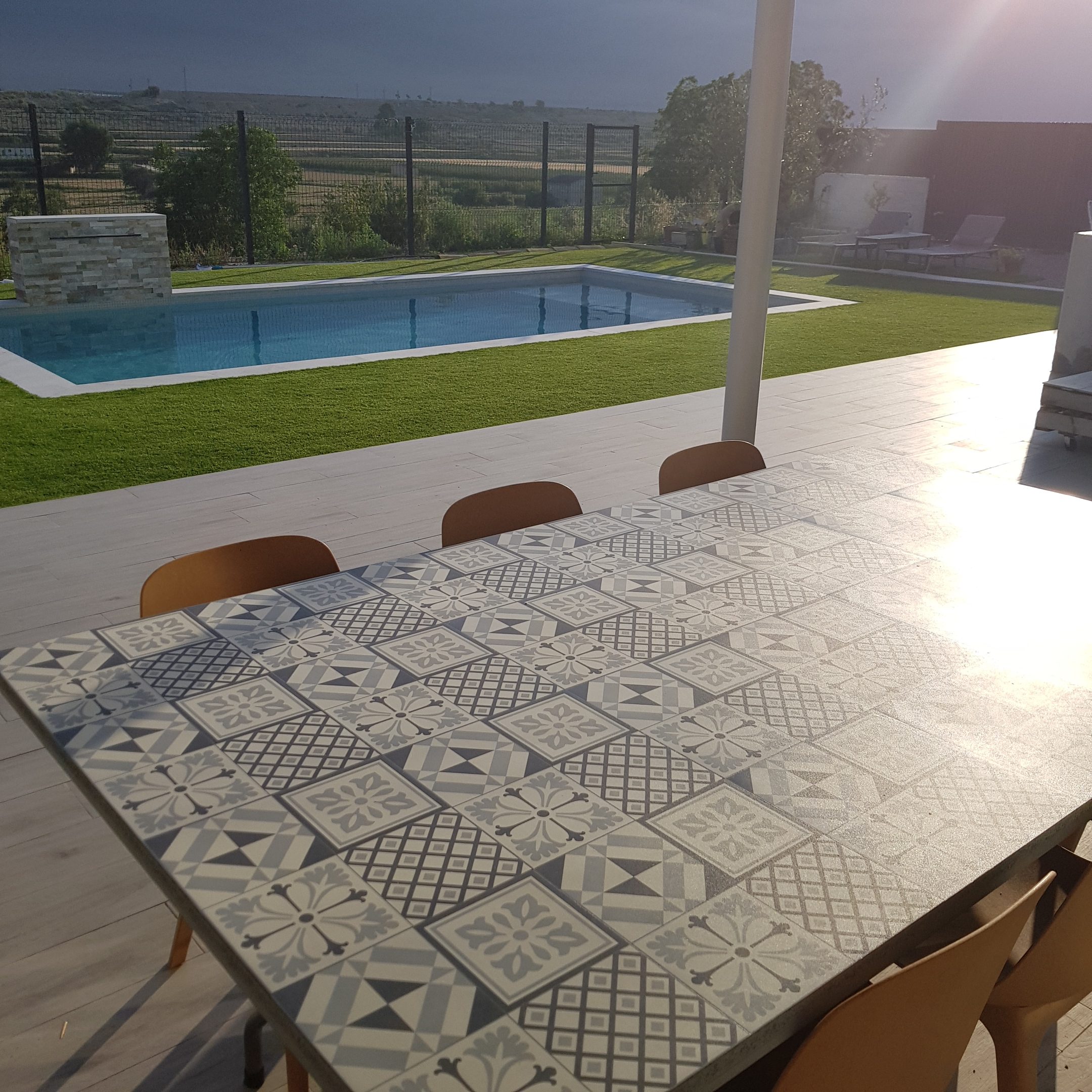 En nuestra zona exterior cubierta de 40m2 podrás comer y cenar con vistas panorámicas a la naturaleza. Nuestra piscina de 8x4 con plataforma servirá de eje central de momentos de diversión.