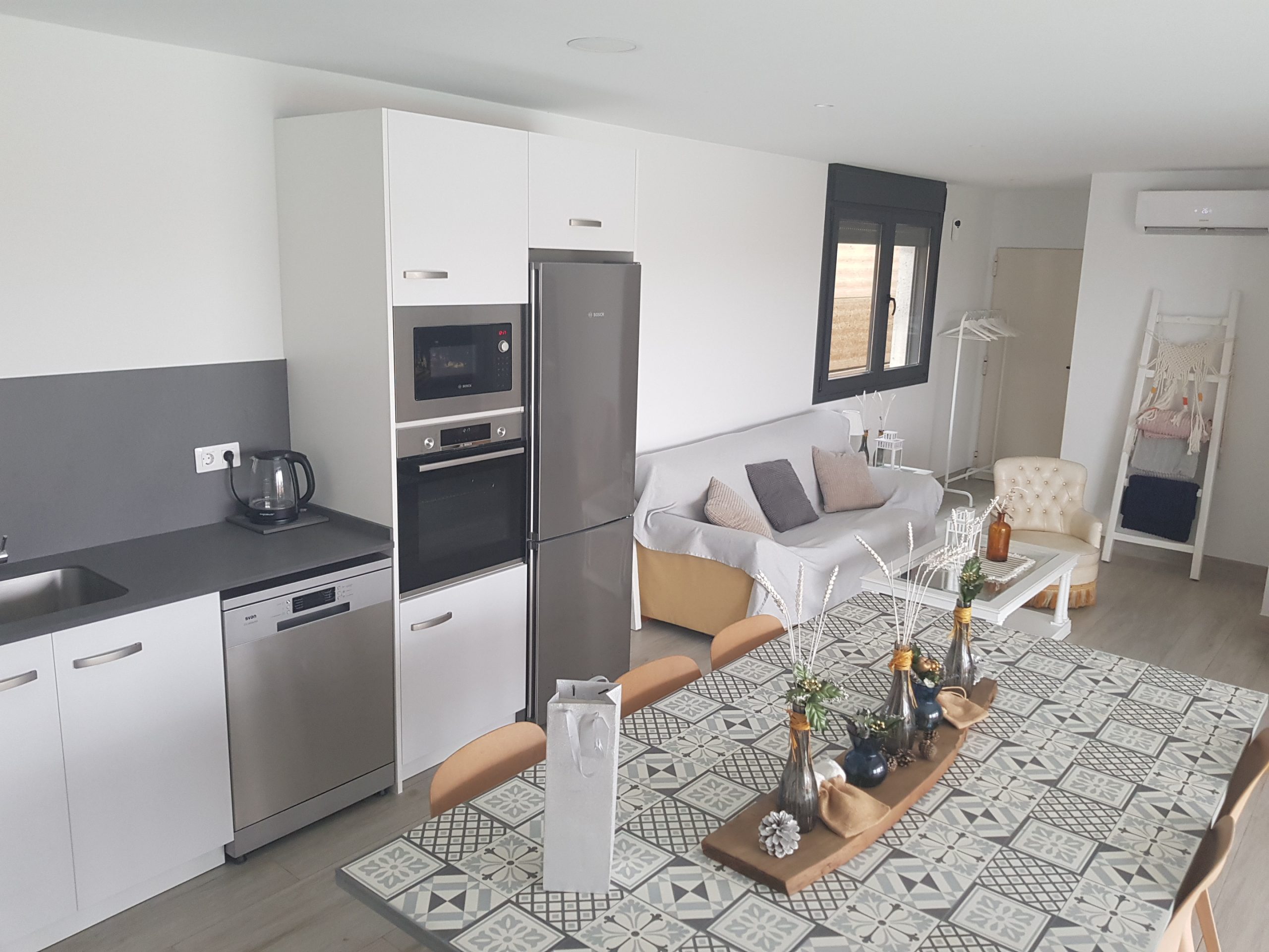 En el año 2018 iniciamos el camino del alquiler turístico en la casa donde nació Dolors, y con mucha ilusión y esfuerzo, construimos un espacio lleno de luz para compartir con el resto del mundo. Iniciamos el proyecto rehabilitando la primera planta dotándola de más luminosidad, con colores claros y suaves para alcanzar esa sensación de paz y relajación. Continuamos en la planta baja construyendo una sala polivalente multiusos. Finalmente, creamos la parte exterior, eje central del proyecto, que dotamos con una zona cubierta y de la piscina con vista panorámica. Para nosotros es un tributo y un recuerdo a la memoria de nuestros ancestros.